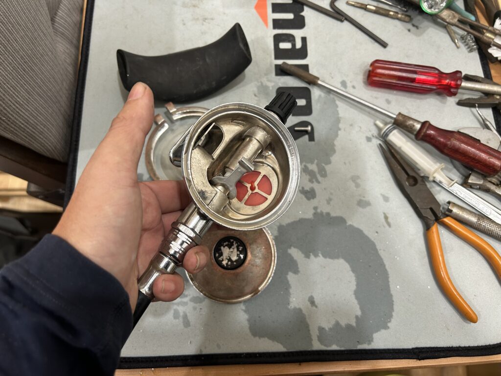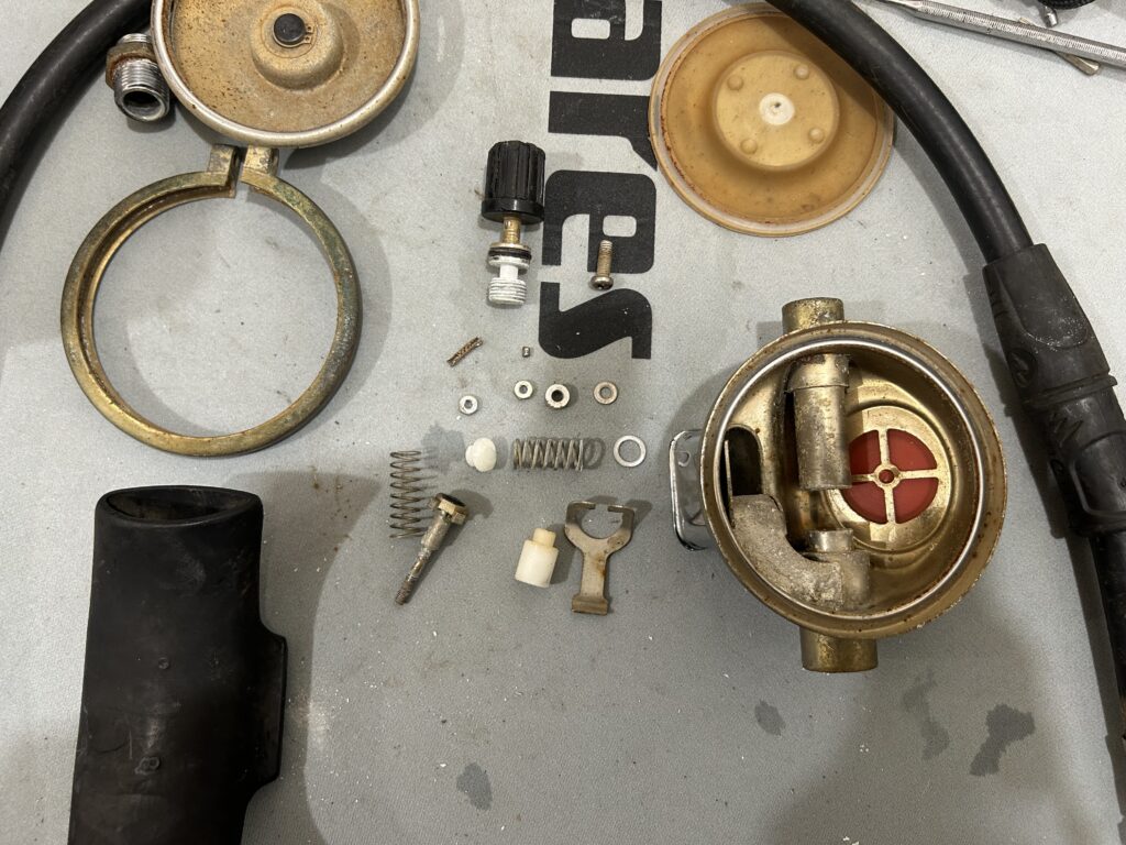 流量調整ノブが外れないようにしてるピンなんかはサビで折れてるので新品に交換ですね。