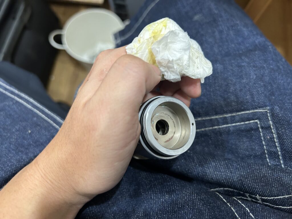 古いグリスなどはどうしても残ってしまいますので拭き取ってキレイにしていきます。