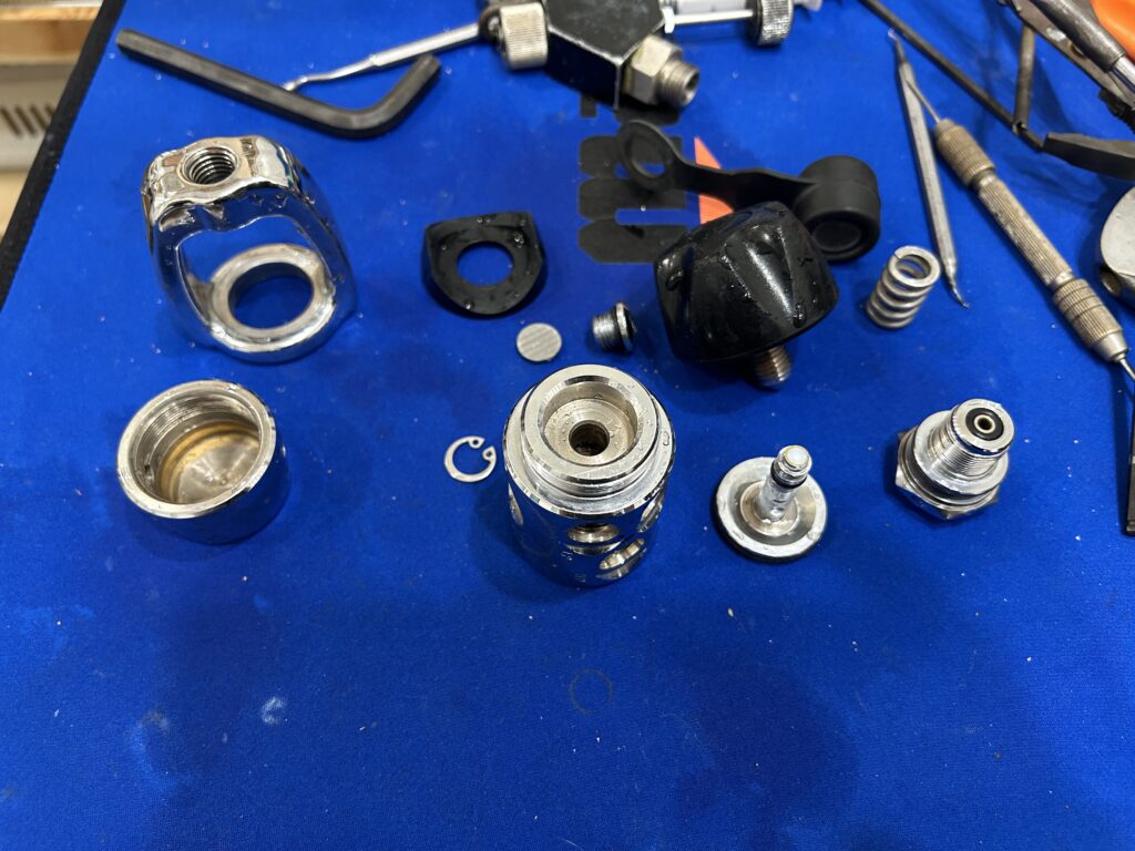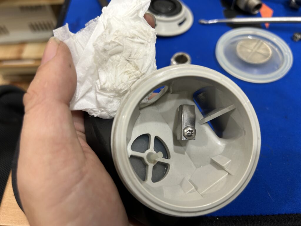 2ndステージやオクトパスの中は、ダイビング後にしっかり洗ったつもりでも結構汚れが溜まりやすい部分になりますのでより丁寧に見させてもらっています。