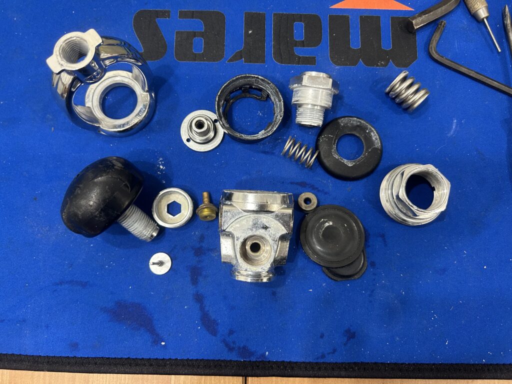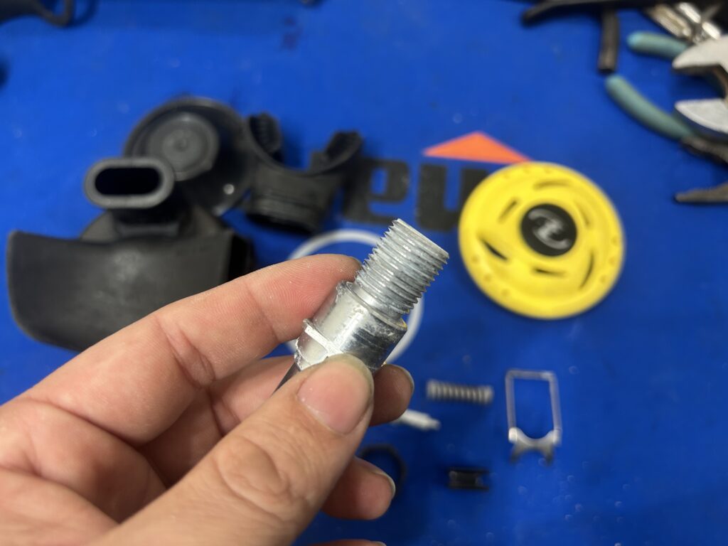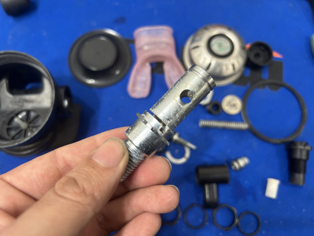 どうしても中圧ホースのカプラー内は水が残りやすいので、ダイビング後はここら辺もしっかりと洗ってあげると良いですね。
